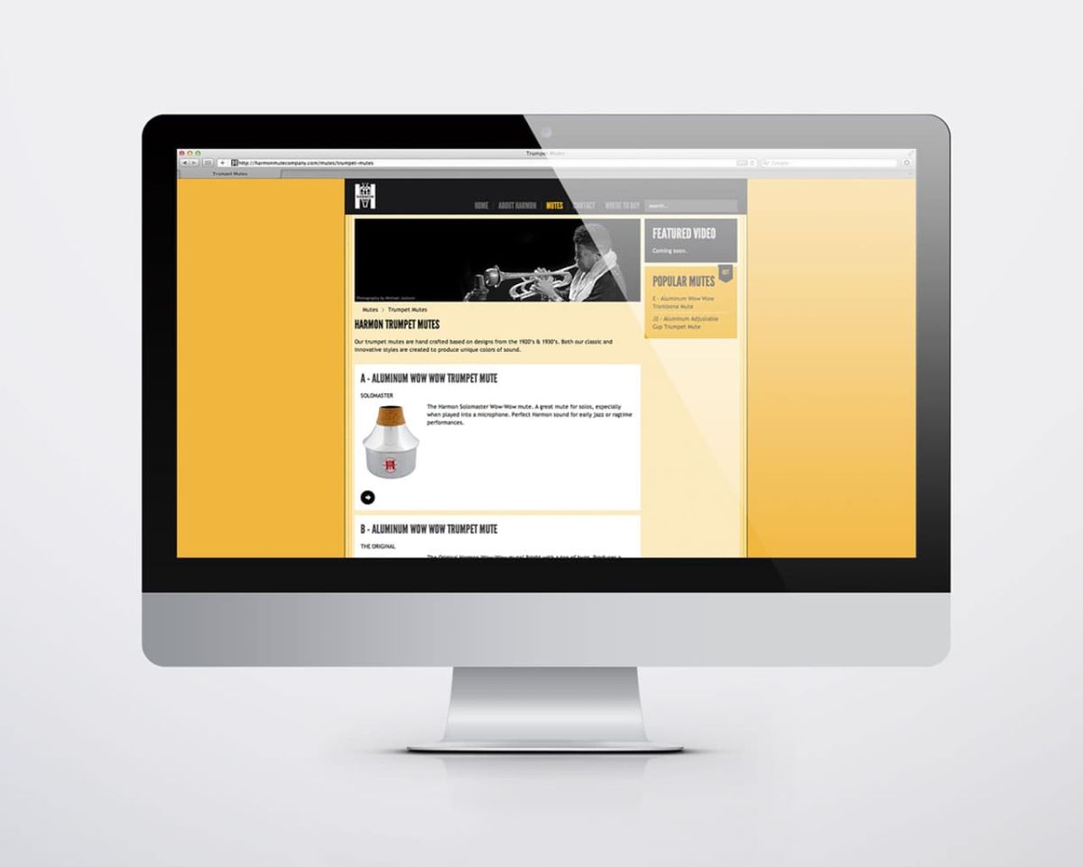 Harmon Mutes have been the most widely used mutes in contemporary music since 1925. Under new ownership, Harmon Mutes approached NeigerDesign to create new packaging, a website, and collateral material that would set Harmon Mutes apart from other mutes, not just in quality, but in style.