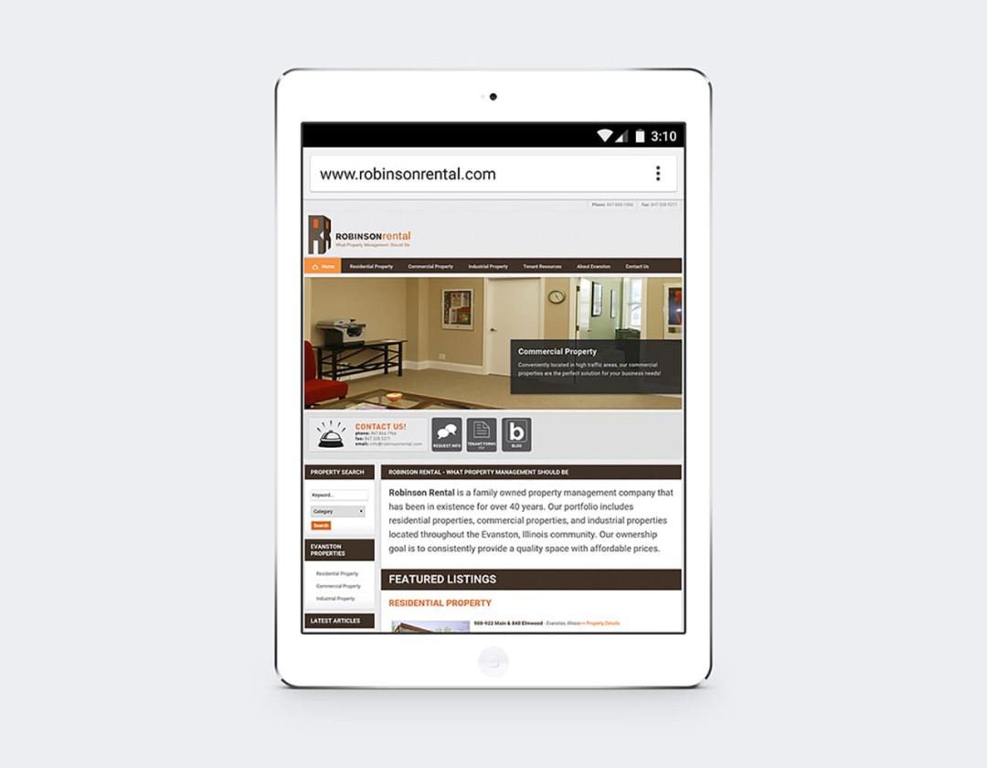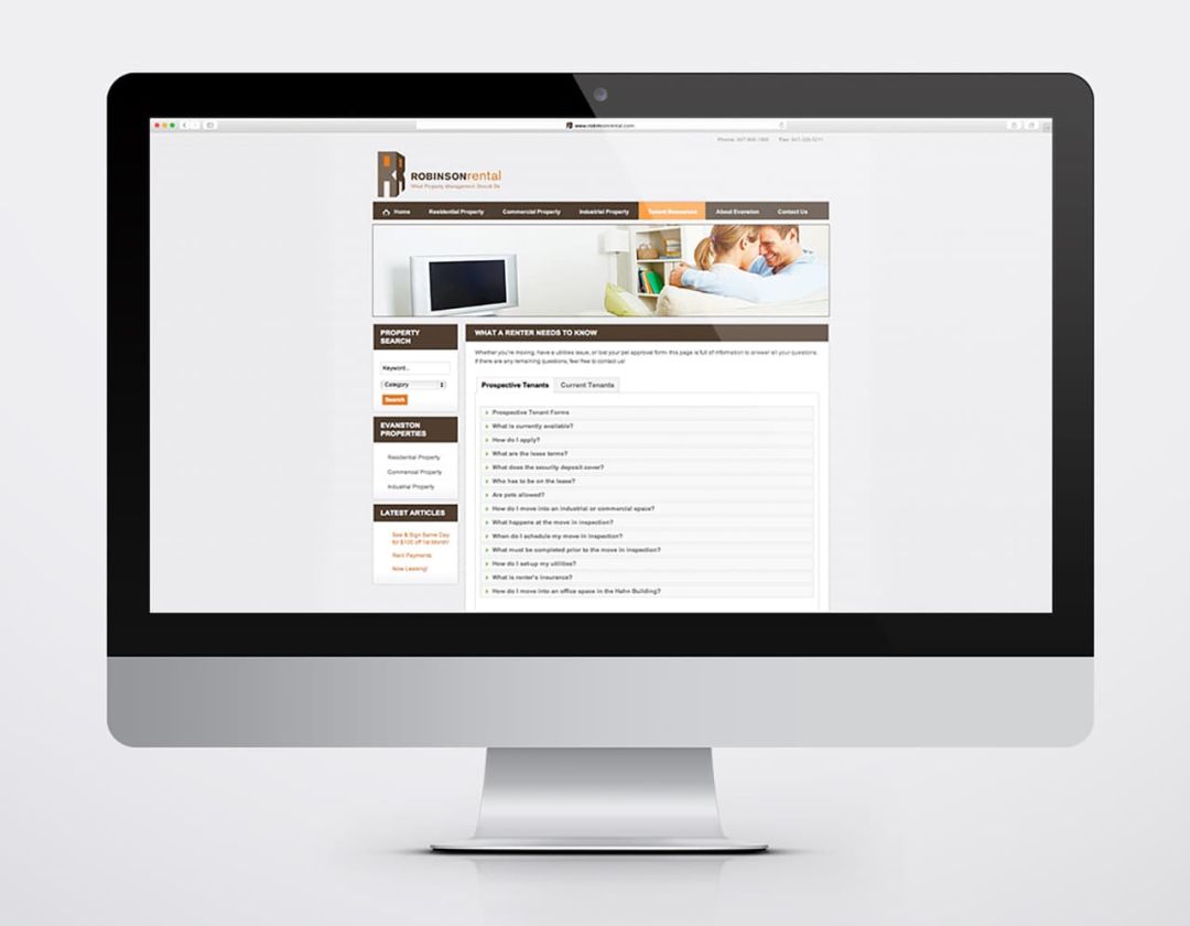 Robinson Rental retained NeigerDesign to create a portfolio of properties website with up-to-date searchable property listing information that is easily accessible by site users and could be easily updated by Robinson Rental staff.