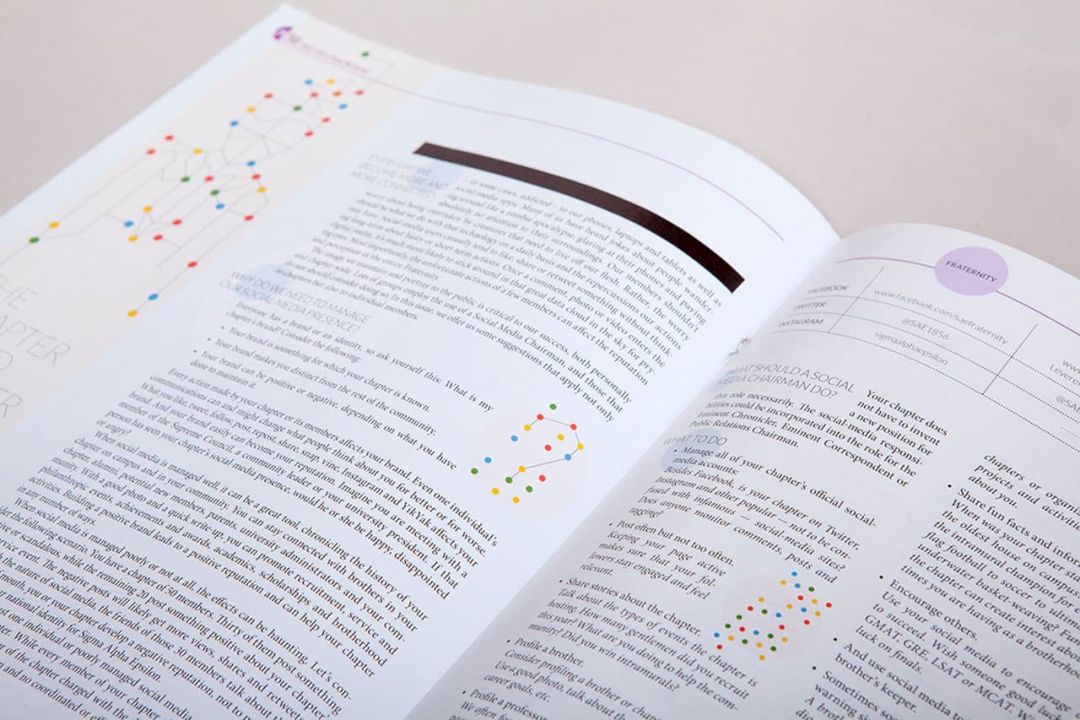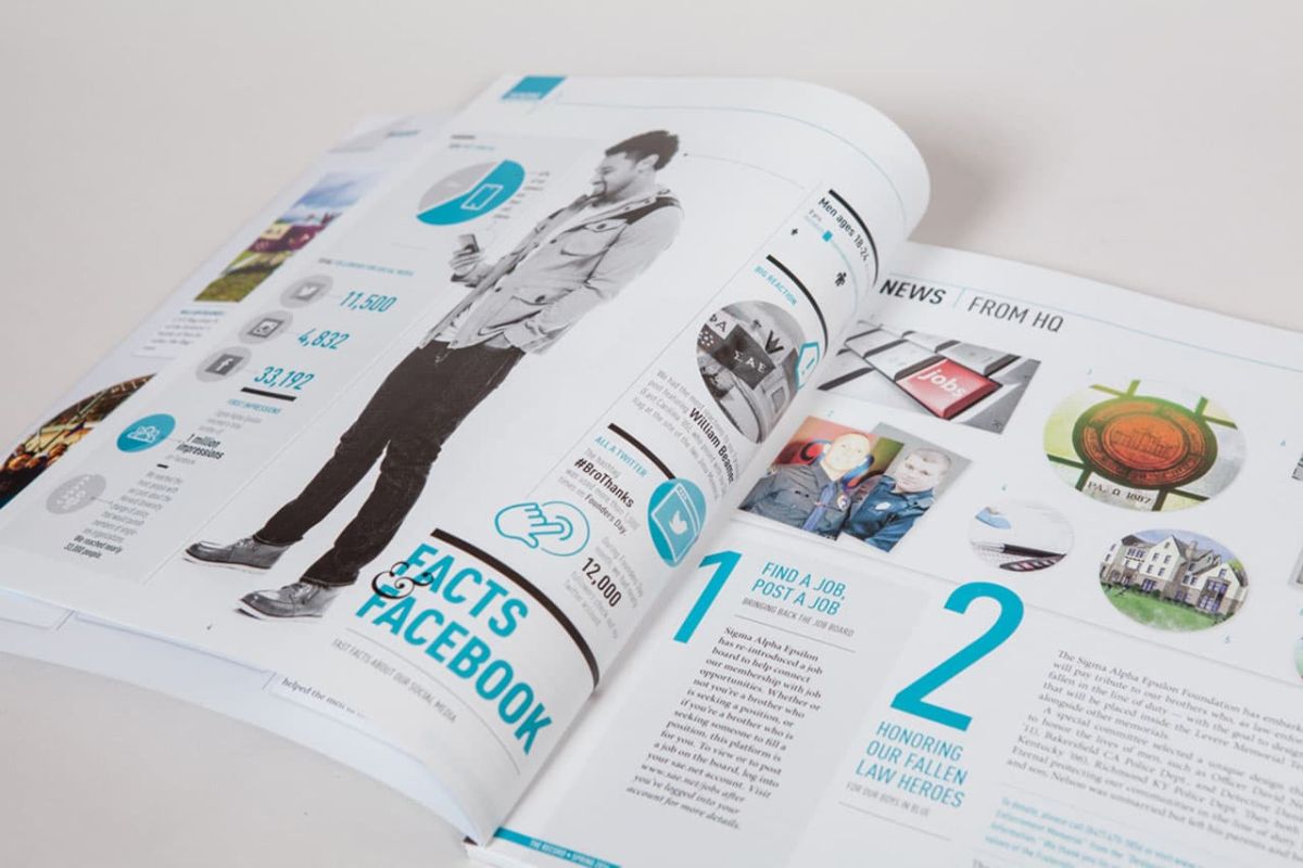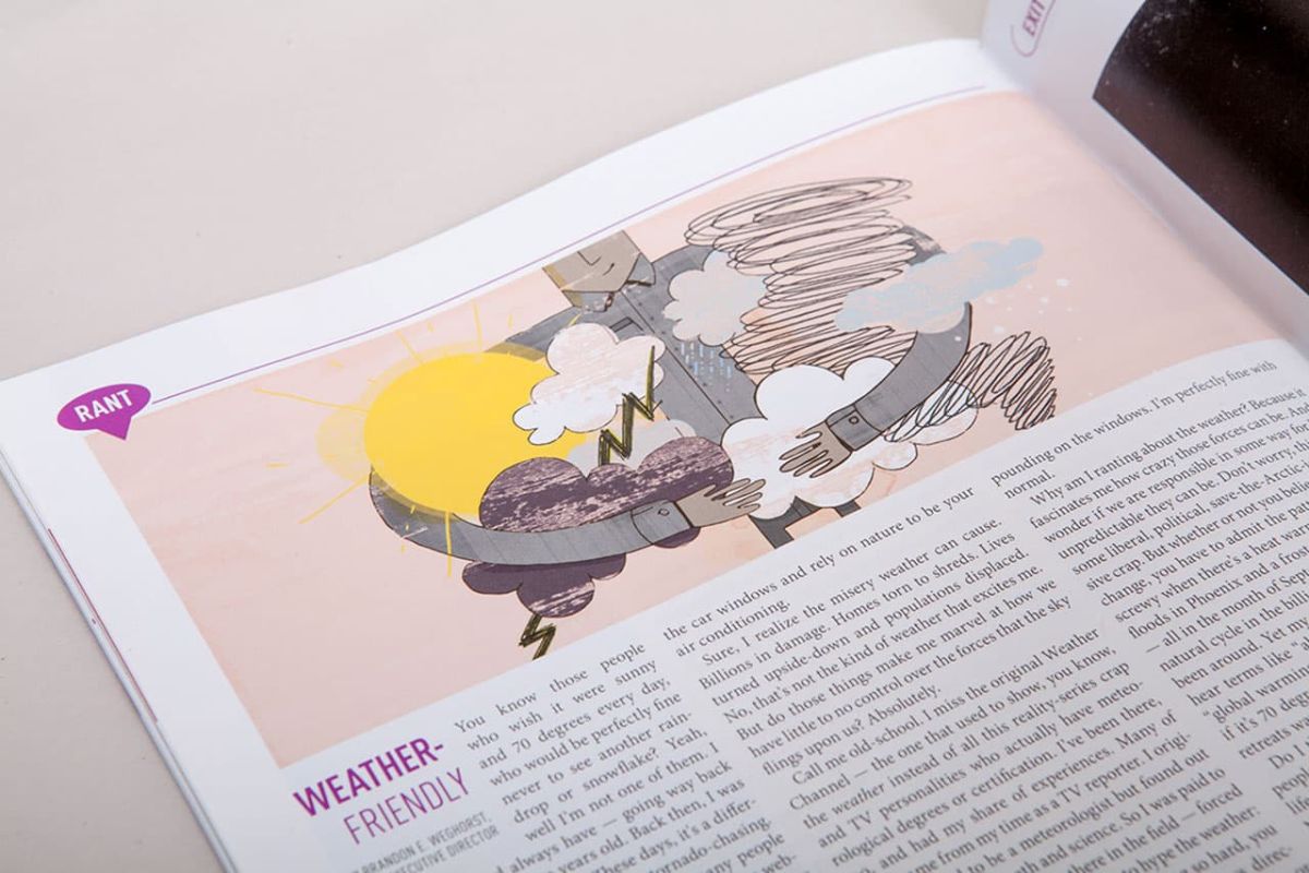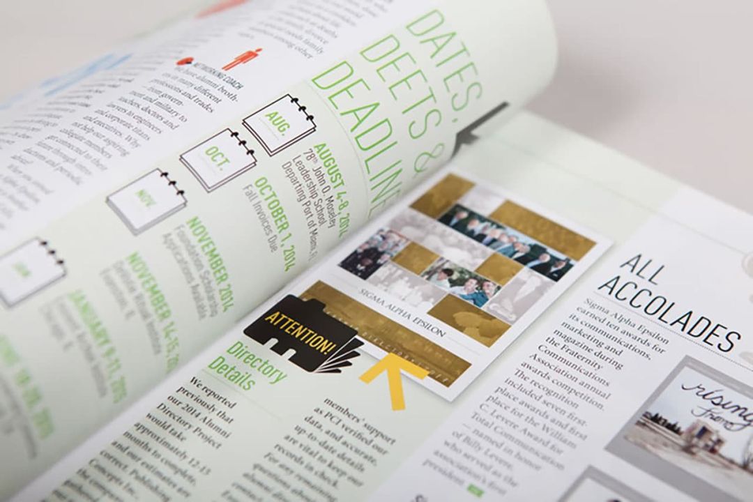 We work closely with the magazine's director and editorial staff to brainstorm the visuals for the cover and features. We orchestrate the creative process with our varied resources for original photography and illustration. We coordinate with the printer to push the creative on paper and unique printing techniques. Consequently, SAE has received many first place awards for both their editorial writing and magazine design.